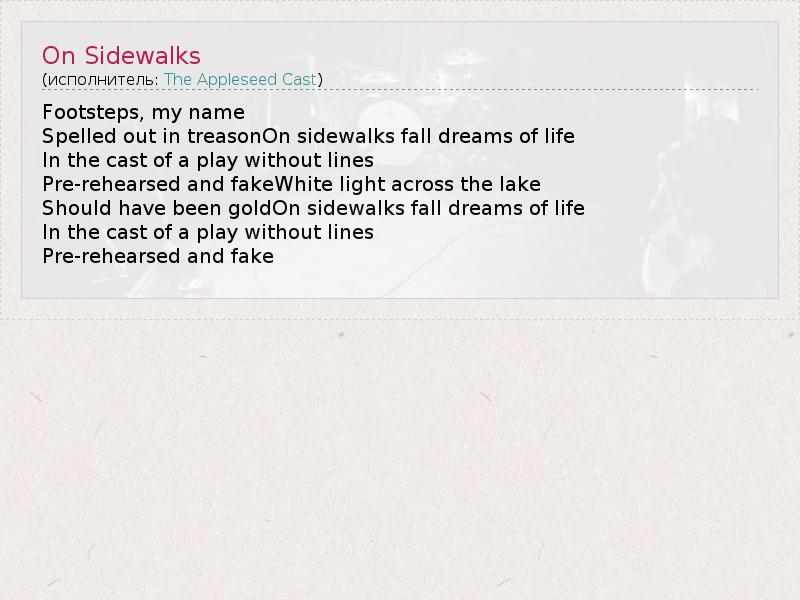 А как ты думаешь, о чем песня "On Sidewalks" ?
