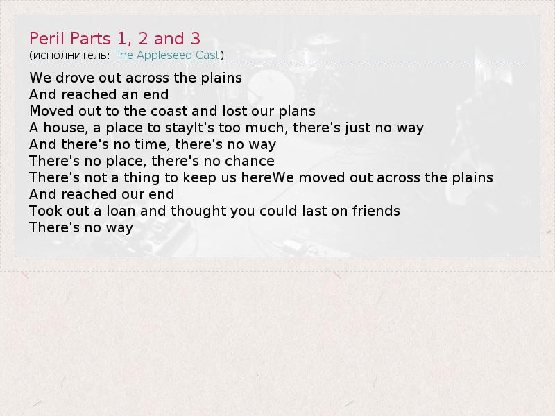 А как ты думаешь, о чем песня "Peril Parts 1, 2 and 3" ?
