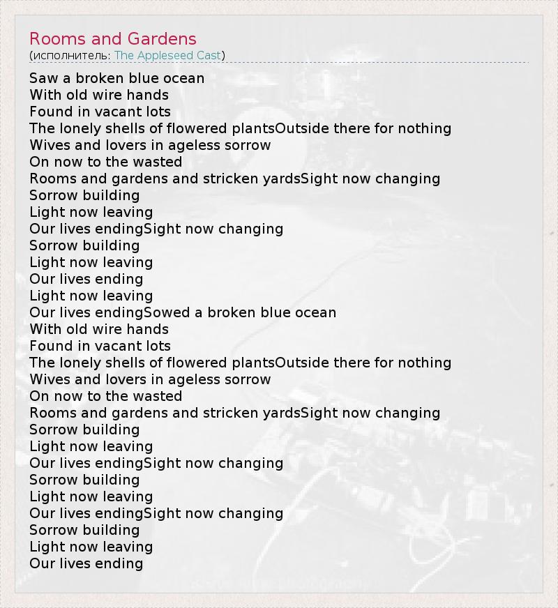А как ты думаешь, о чем песня "Rooms and Gardens" ?