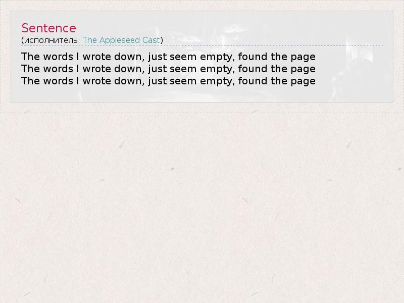 The words I wrote down, just seem empty, found the page The words I wrote down, just seem empty, found the page The words I wrote down, just seem empty, found the page