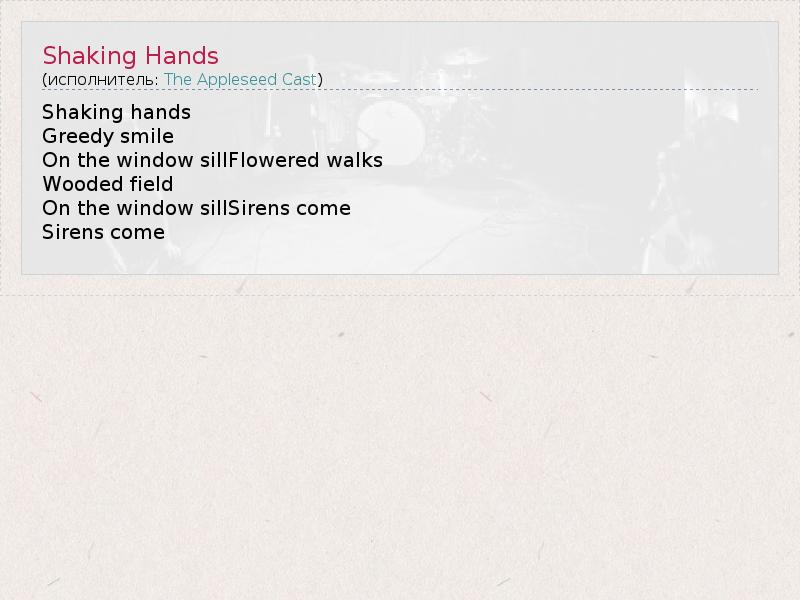 А как ты думаешь, о чем песня "Shaking Hands" ?