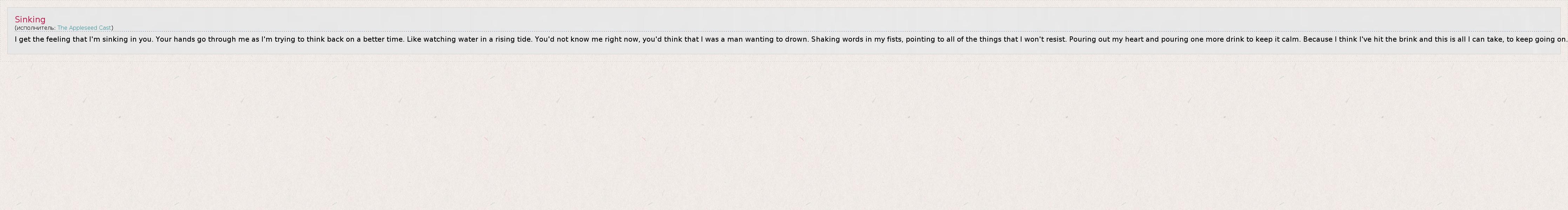 Это интересно:The Appleseed Cast - группа из города Лоуренс, штат Канзас, играющая смесь из indie / emo / post-rock / alternative rock.“Основание и дебют (1997 - 1998)”Инди группа The Appleseed Cast была образована в 1997 году в Южной Калифорнии музыкантами: Christopher Crisci, Jason Wickersheim и Louie Ruiz и изначально называлась December's Tragic Drive (название коллектива - фраза, взятая из песни “Seven"... продолжение