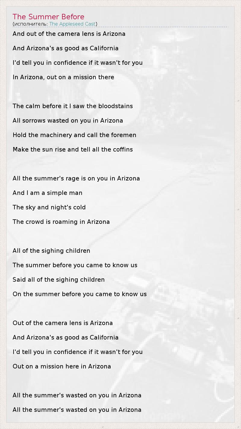 А как ты думаешь, о чем песня "The Summer Before" ?