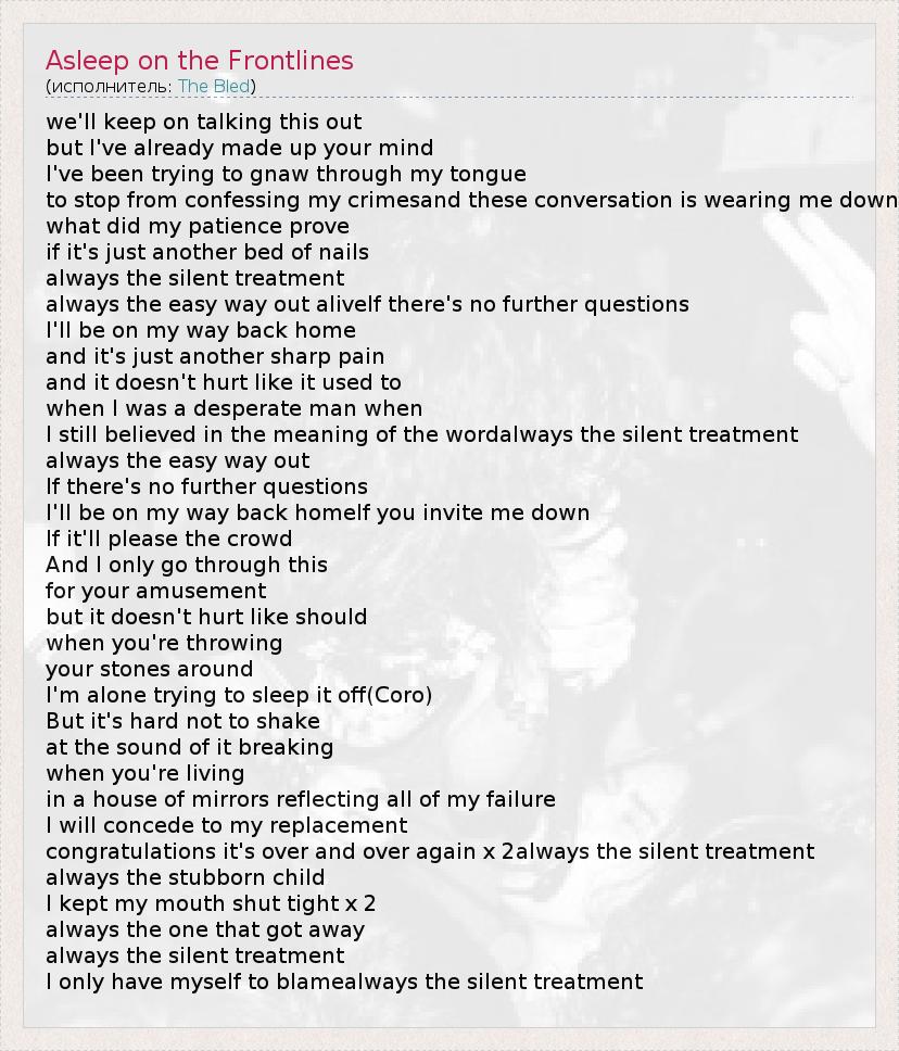 А как ты думаешь, о чем песня "Asleep on the Frontlines" ?