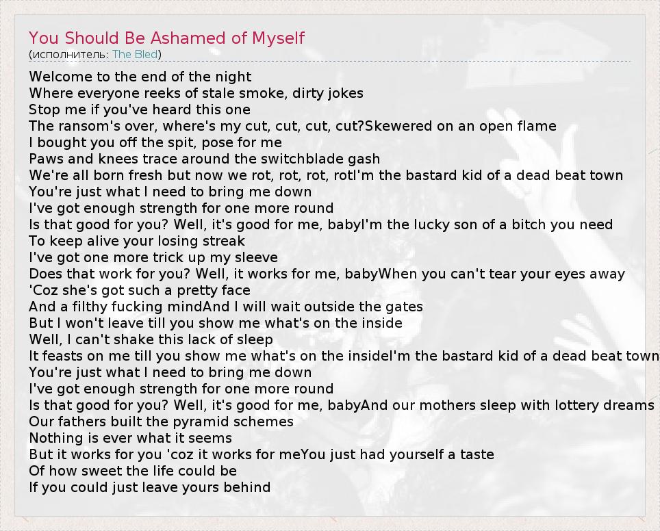 А как ты думаешь, о чем песня "You Should Be Ashamed of Myself" ?