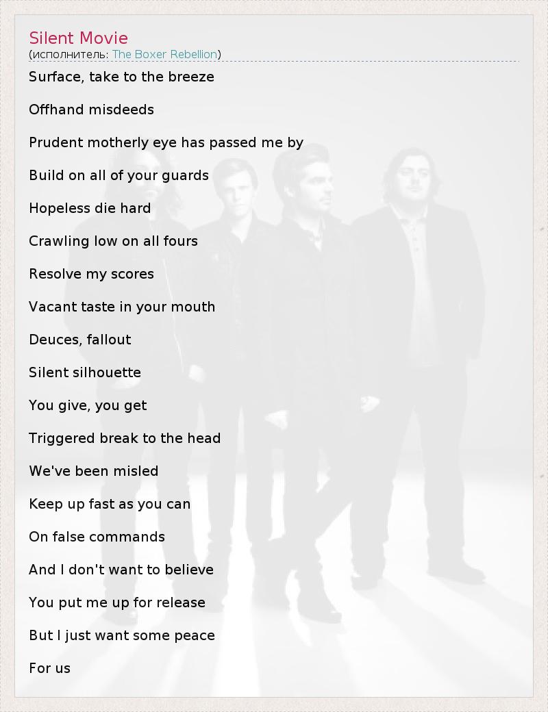 А как ты думаешь, о чем песня "Silent Movie" ?