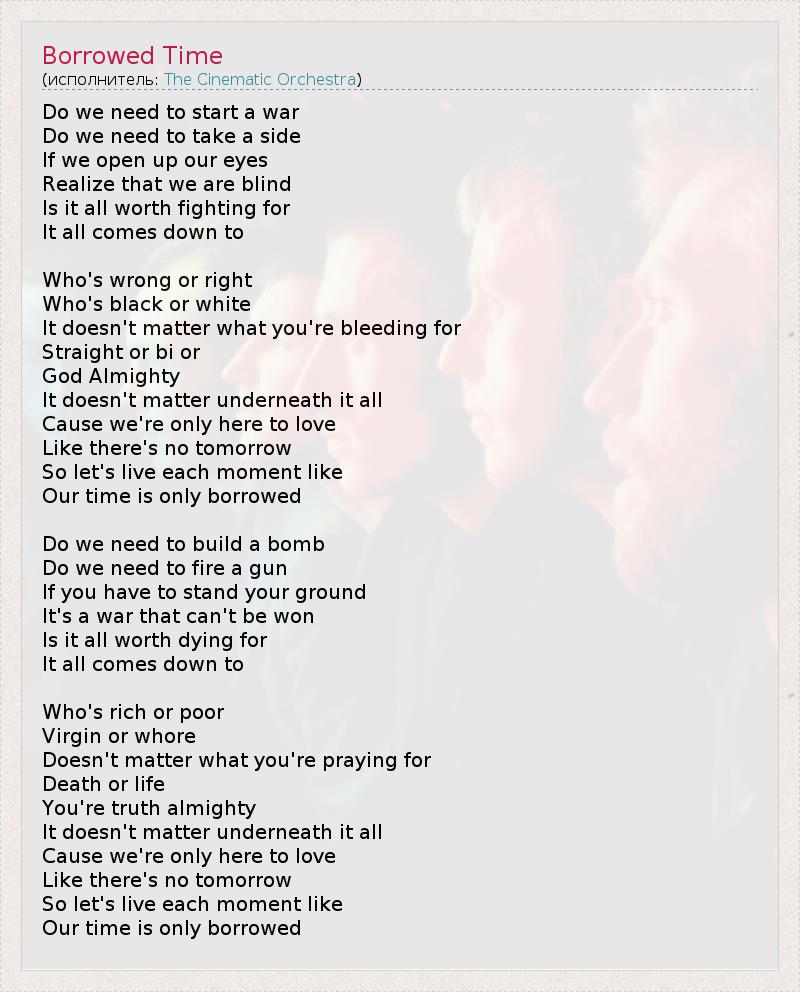 А как ты думаешь, о чем песня "Borrowed Time" ?