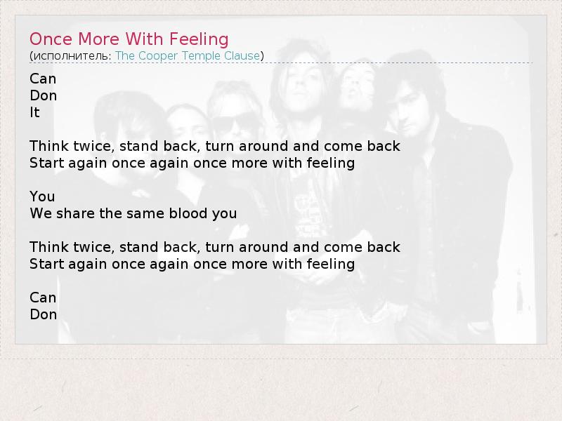 А как ты думаешь, о чем песня "Once More With Feeling" ?