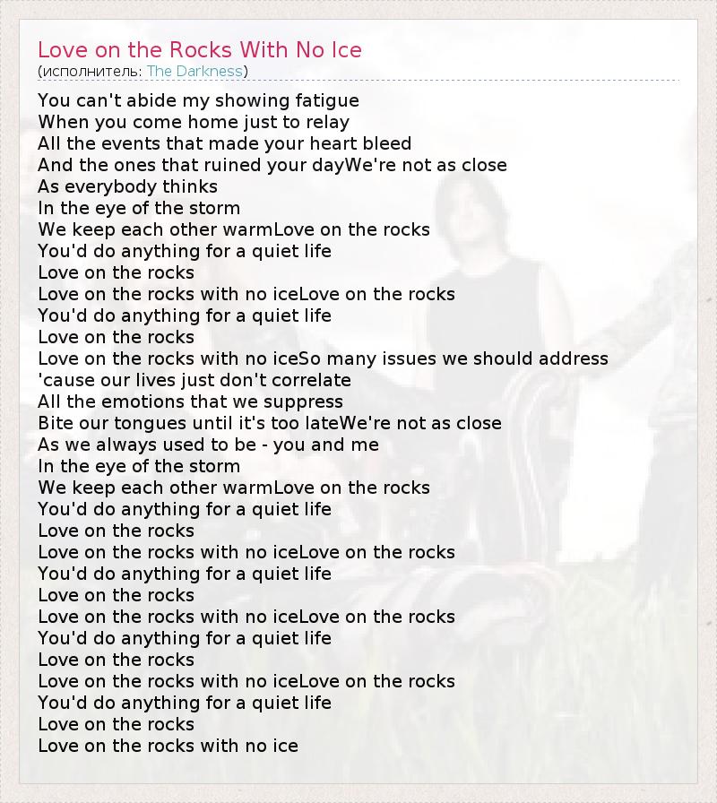 А как ты думаешь, о чем песня "Love on the Rocks With No Ice" ?