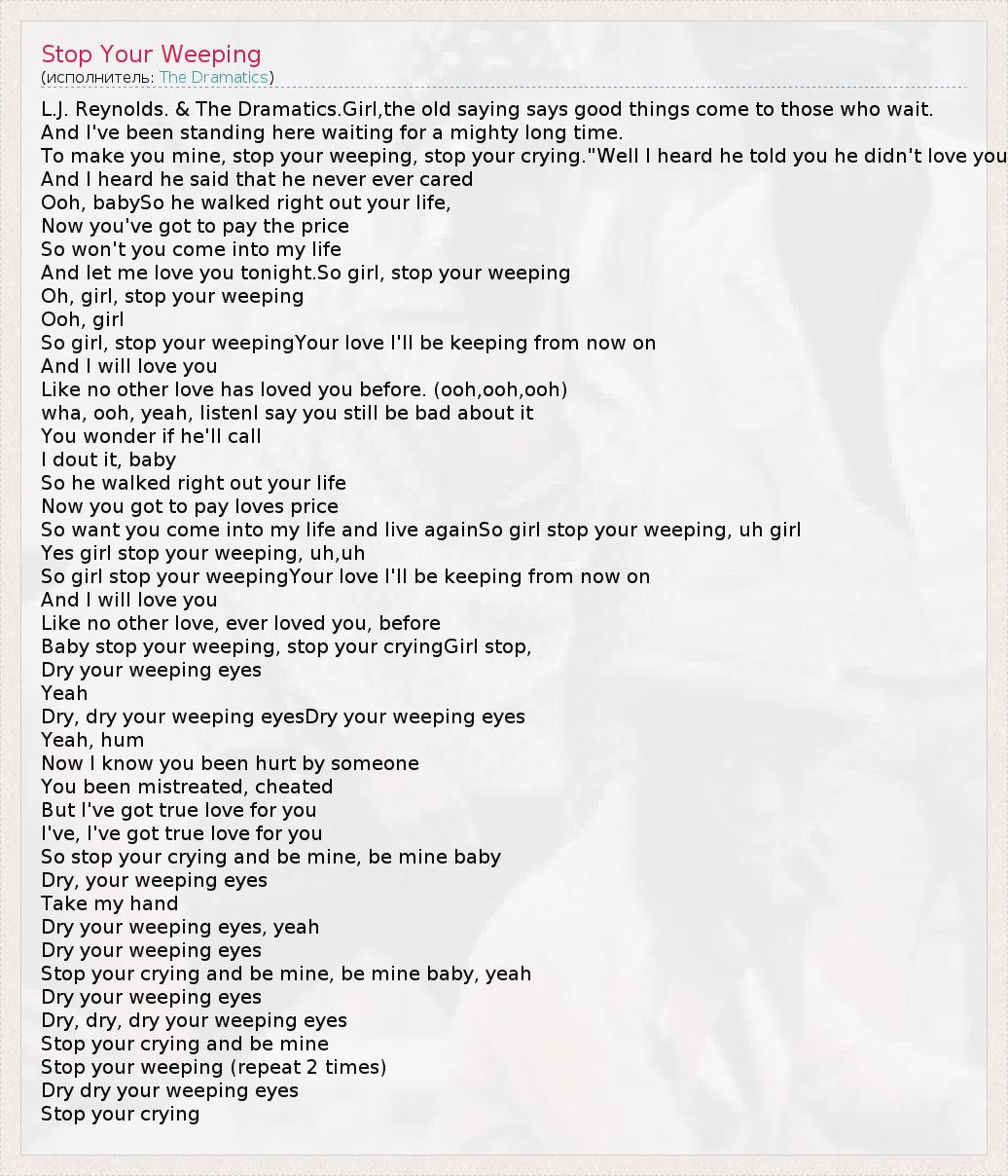 А как ты думаешь, о чем песня "Stop Your Weeping" ?