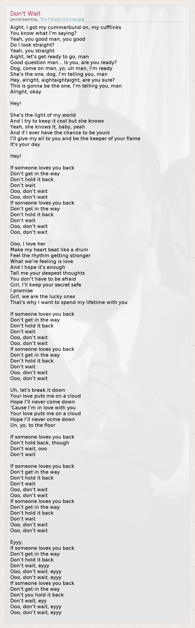 Don't wait, ooo