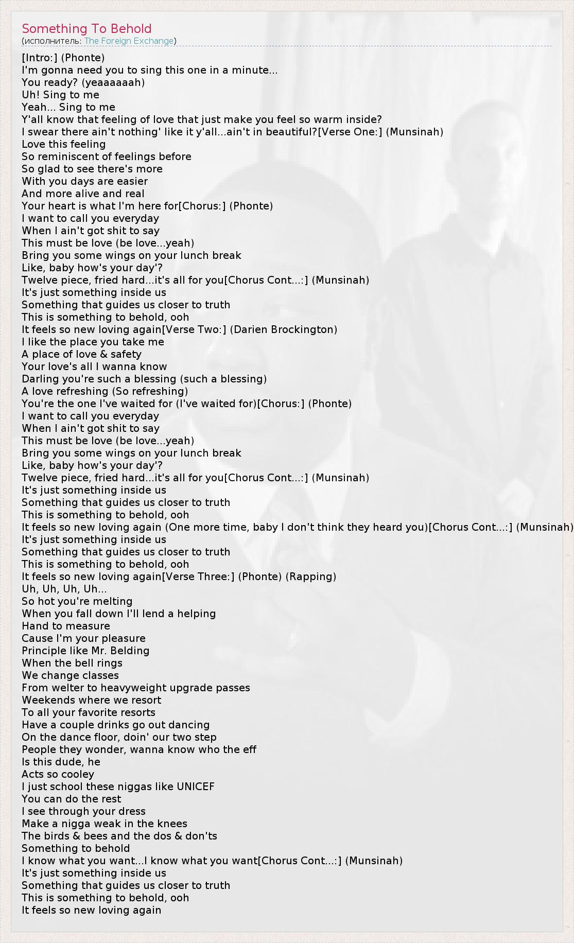 А как ты думаешь, о чем песня "Something To Behold" ?