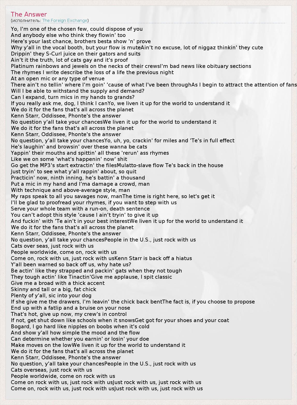 Это интересно:Nicolay помог с одним из треков для Little Brother, и Phonte захотел продолжить работать с ним. Но в связи с тем, что они проживали в разных странах, они не могли часто работать друг с другом. Но выход был найден – Nicolay делал бит и посылал его по e-mail Phont’у, который накладывал на минуса вокал. Таким образом, в скором времени образовался андерграунд дуэт The Foreign Exchange.