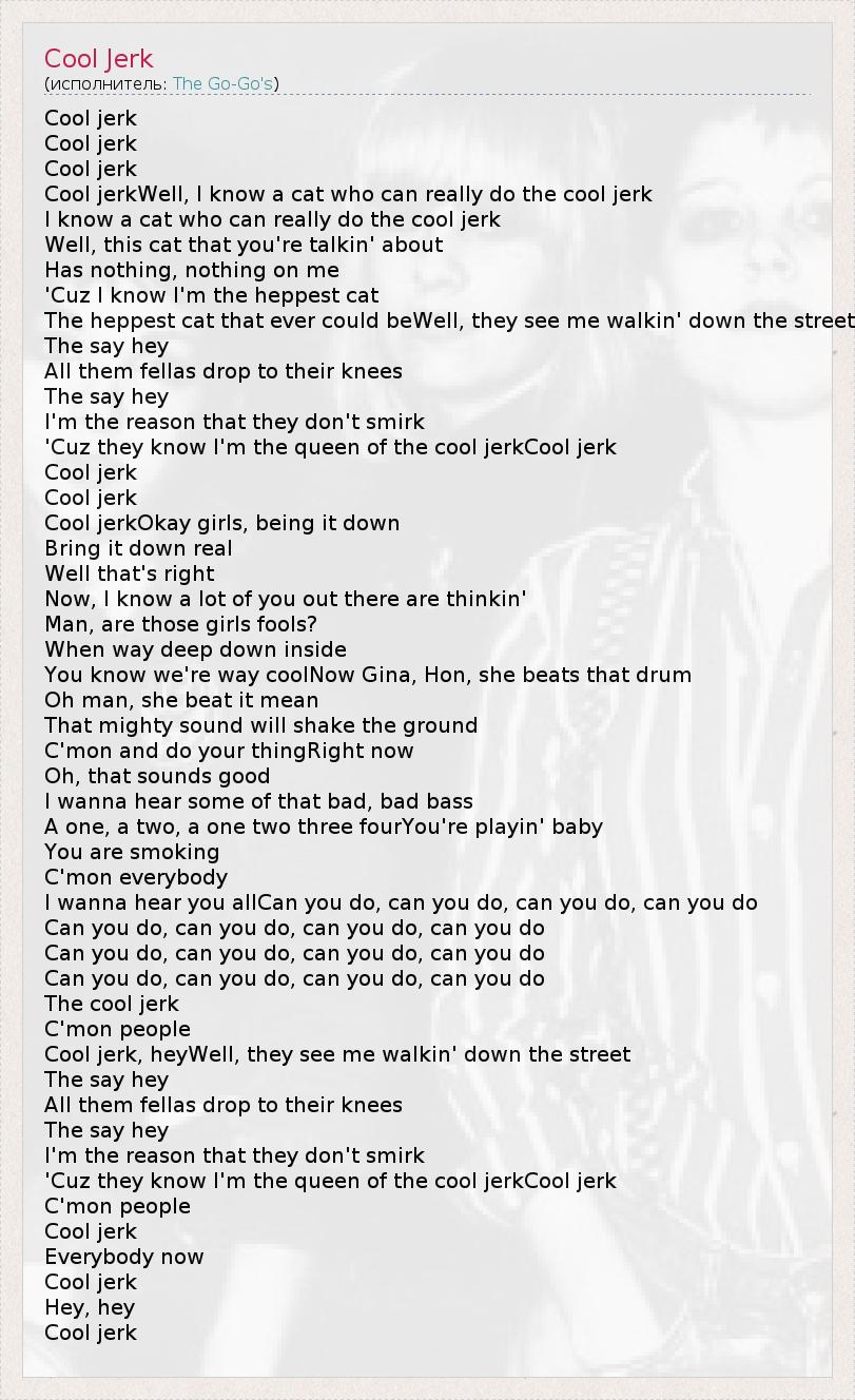 А как ты думаешь, о чем песня "Cool Jerk" ?