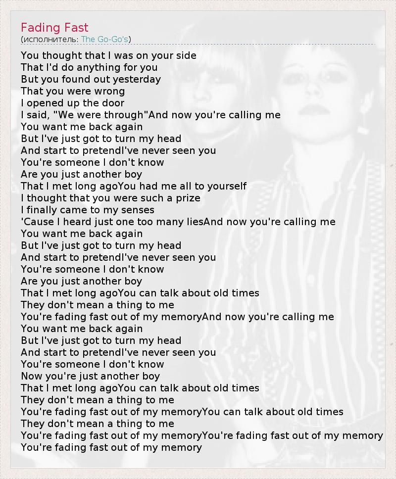 You're fading fast out of my memoryYou're fading fast out of my memory