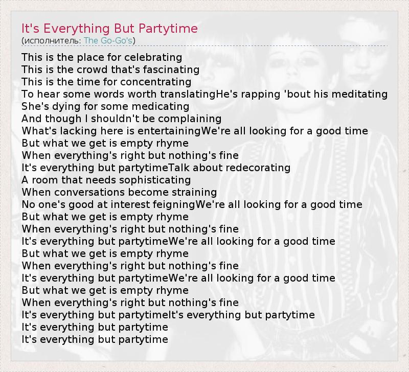 А как ты думаешь, о чем песня "It's Everything But Partytime" ?