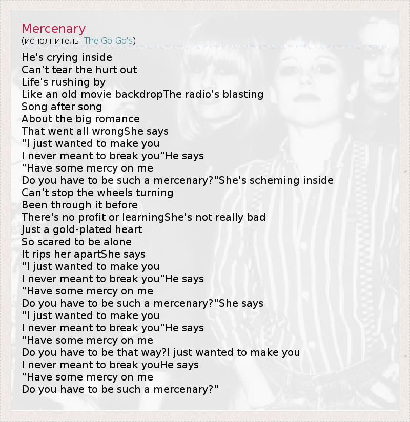 Это интересно:ГОУ-ГОУЗ (The Go-Go's) - американская пауэр-поп-группа. Была образована в 1978 году в Калифорнии. Первоначально группа называлась THE MISFITS. В ее состав входили только девушки: Белинда Карлайл (р. 16 августа 1958, Голливуд, Калифорния; ведущая вокалистка) и Джейн Уидлин (р. 20 мая 1958, Окономовок, Висконсин; ритм-гитара, вокал). К ним присоединились Шарлотта Кэффи (р. 21 октября 1953, Санта-Моника, Калифорния;... продолжение
