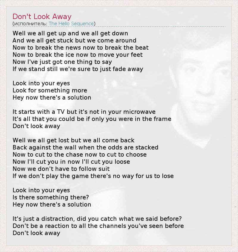 А как ты думаешь, о чем песня "Don't Look Away" ?