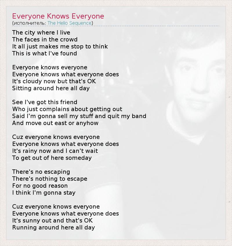 А как ты думаешь, о чем песня "Everyone Knows Everyone" ?