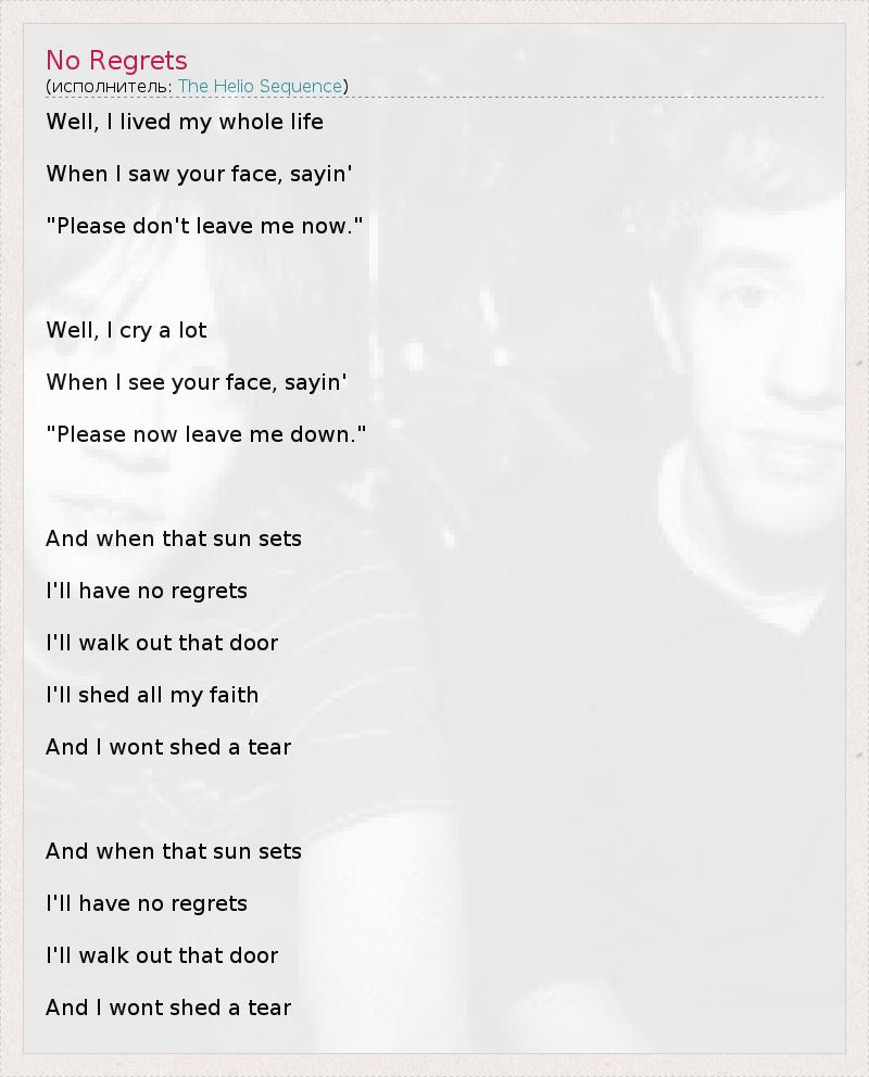 А как ты думаешь, о чем песня "No Regrets" ?