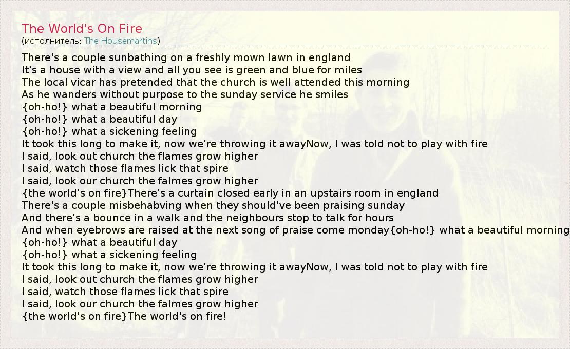 А как ты думаешь, о чем песня "The World's On Fire" ?