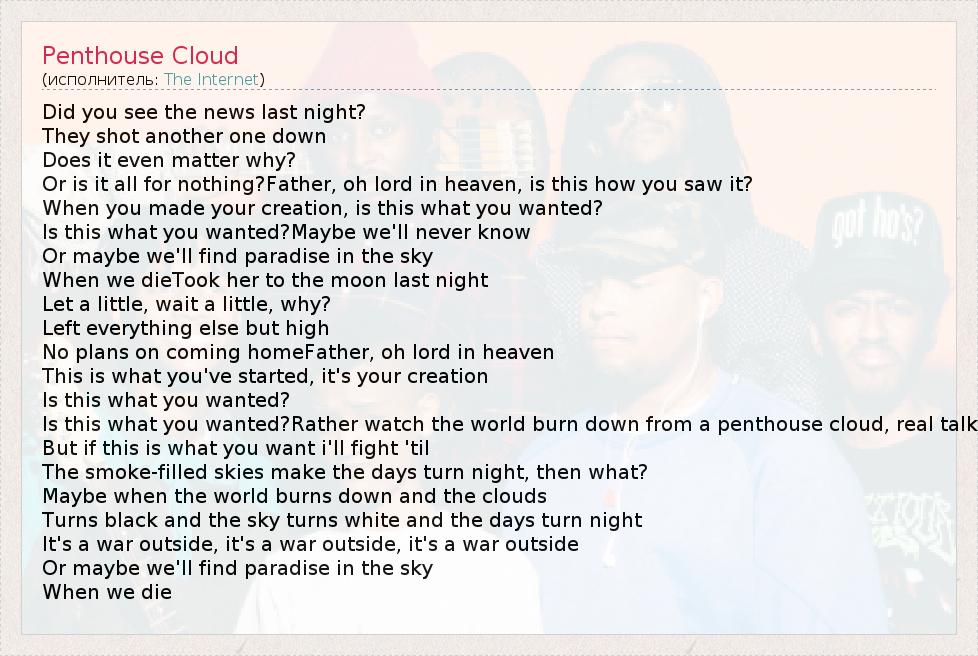 А как ты думаешь, о чем песня "Penthouse Cloud" ?