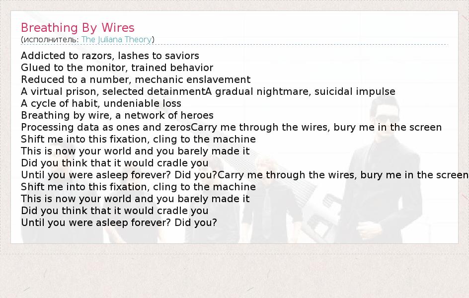 А как ты думаешь, о чем песня "Breathing By Wires" ?