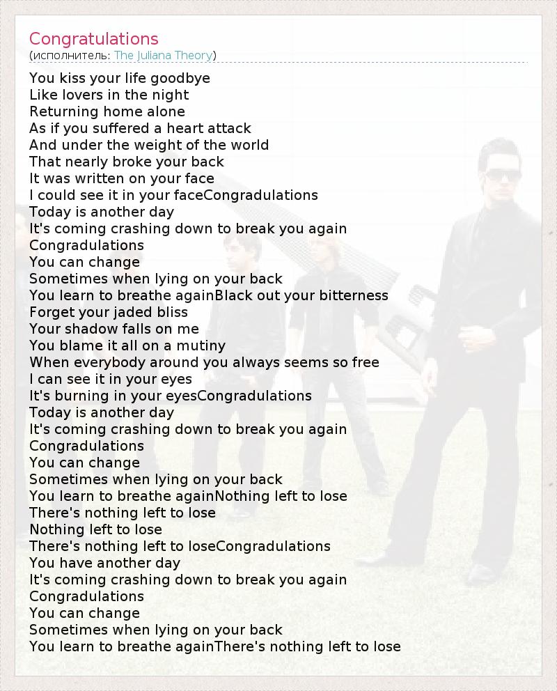 Это интересно:В разработке "Теории Джулианы", а проще говоря - в создании американской команды Juliana Theory, принимали участие пятеро начинающих музыкантов: вокалист и гитарист Бретт Дитар (Brett Detar), басист и бэк-вокалист Чэд Алан (Chad Alan), гитарист Джошуа Фидлер (Joshua Fiedler), гитарист и бэк-вокалист Джошуа Коскер (Joshua Kosker) и барабанщик Нил Хебранк (Neil Hebrank). Объединяла их любовь к классическому року и чутье... продолжение