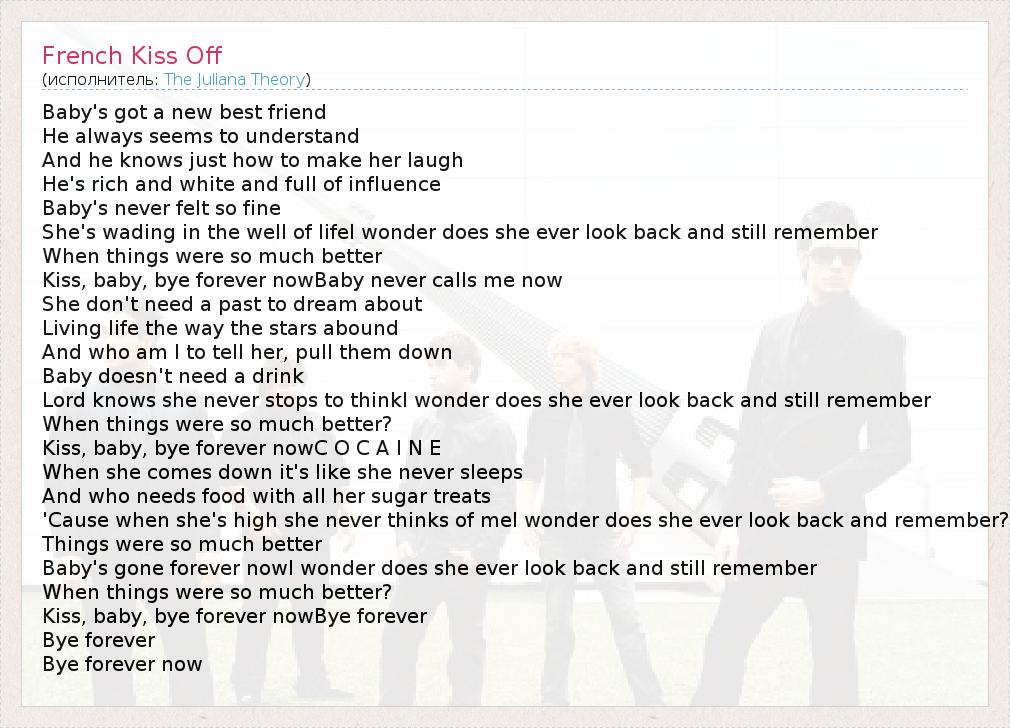 А как ты думаешь, о чем песня "French Kiss Off" ?
