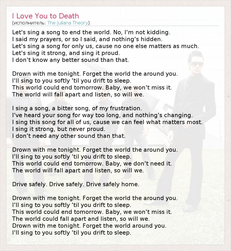 А как ты думаешь, о чем песня "I Love You to Death" ?