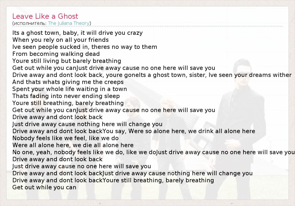 А как ты думаешь, о чем песня "Leave Like a Ghost" ?