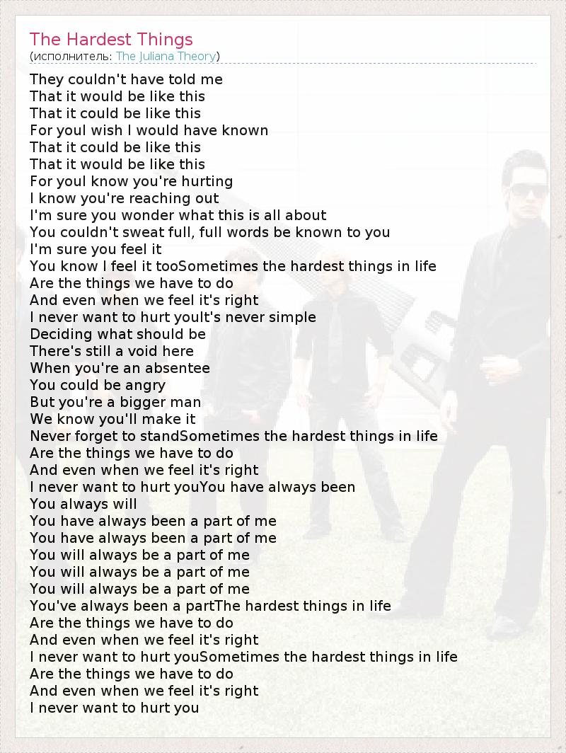 А как ты думаешь, о чем песня "The Hardest Things" ?