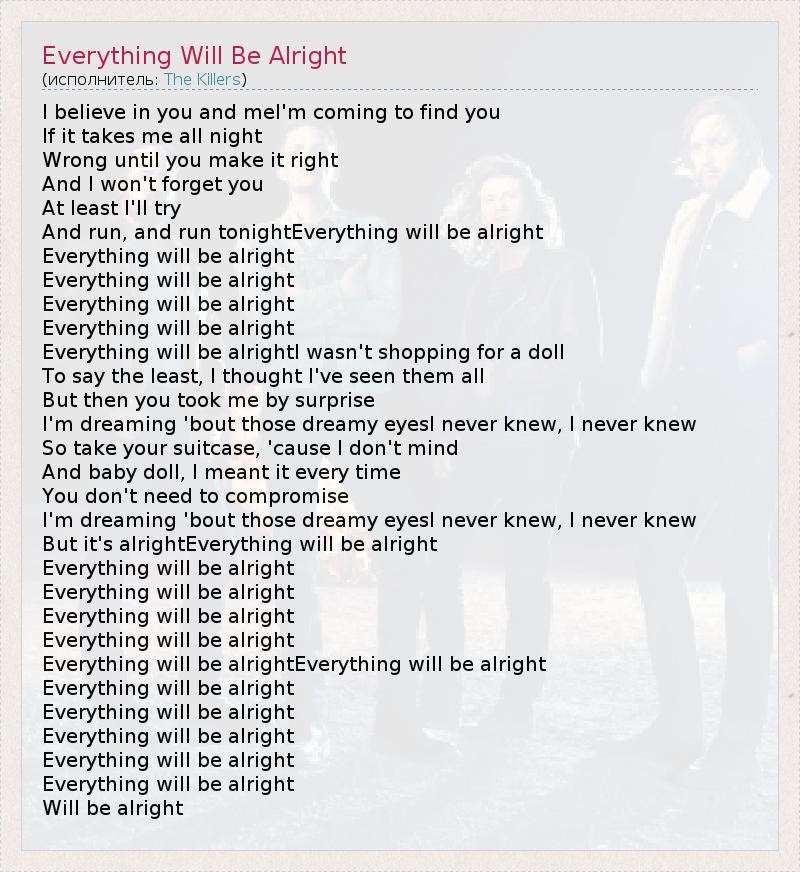 А как ты думаешь, о чем песня "Everything Will Be Alright" ?