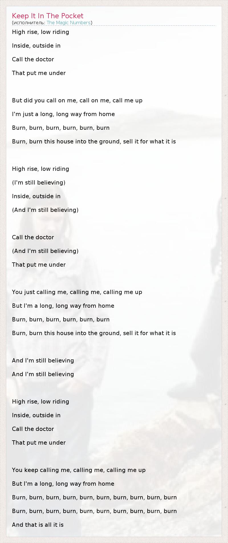 А как ты думаешь, о чем песня "Keep It In The Pocket" ?