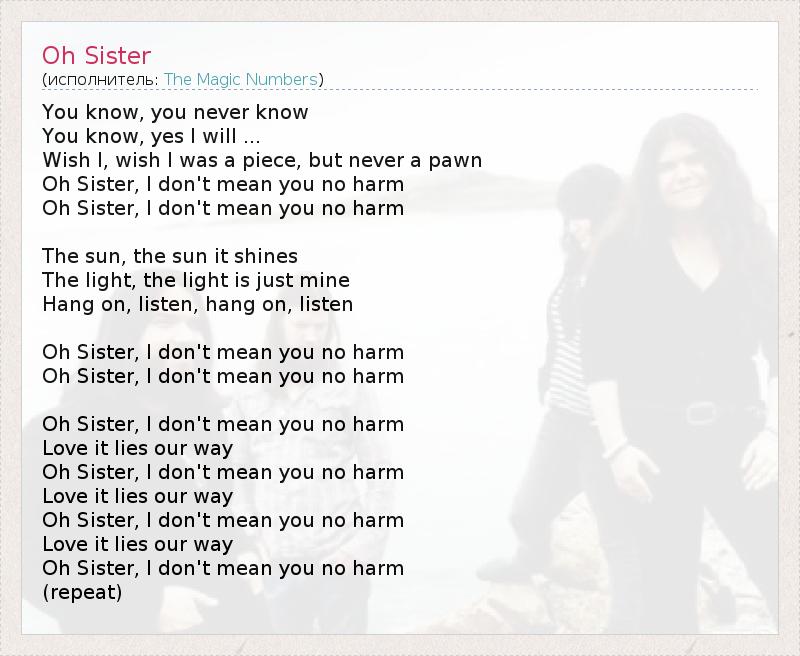 А как ты думаешь, о чем песня "Oh Sister" ?