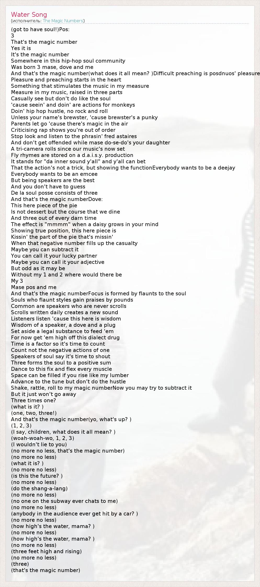 And that's the magic number(what does it all mean? )Difficult preaching is posdnuos' pleasure