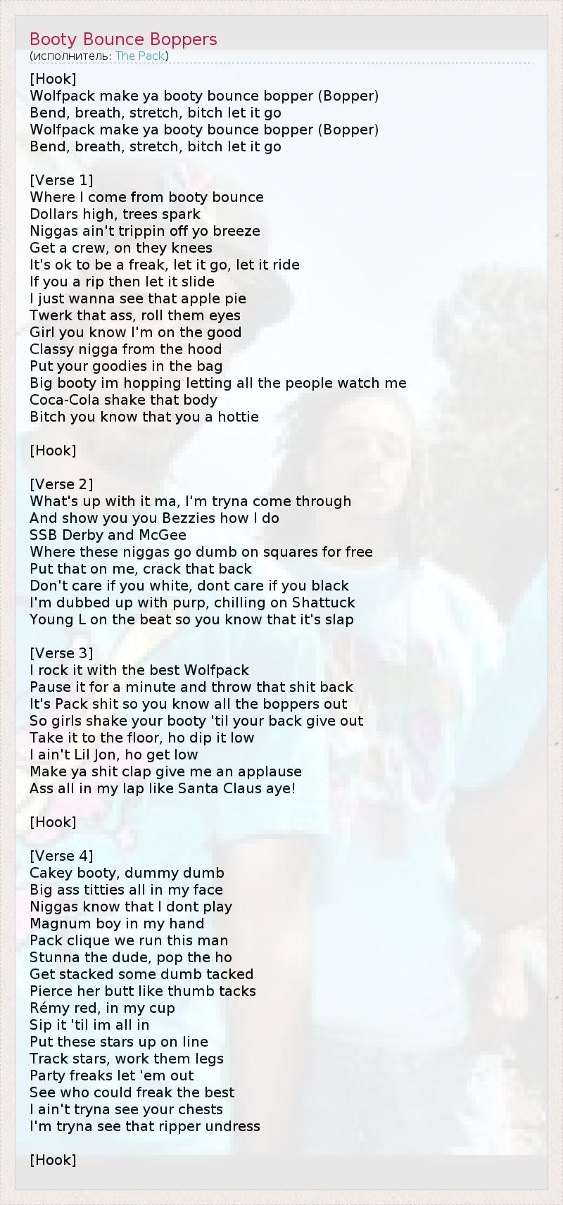 А как ты думаешь, о чем песня "Booty Bounce Boppers" ?