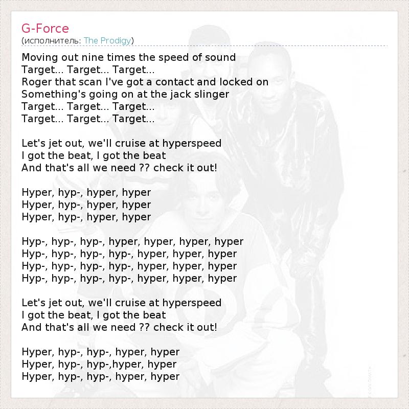 Moving out nine times the speed of sound Target... Target... Target... Roger that scan I've got a contact and locked on Something's going on at the jack slinger Target... Target... Target... Target... Target... Target... Let's jet out, we'll cruise at hyperspeed I got the beat, I got the beat And that's all we need ?? check it out! Hyper, hyp-, hyper, hyper Hyper, hyp-, hyper, hyper Hyper, hyp-, hyper, hyper Hyp-, hyp-, hyp-, hyper, hyper, hyper, hyper Hyp-, hyp-, hyp-, hyp-, hyper, hyper, hyper Hyp-, hyp-, hyp-, hyp-, hyper, hyper, hyper Hyp-, hyp-, hyp-, hyp-, hyper, hyper, hyper Let's jet out, we'll cruise at hyperspeed I got the beat, I got the beat And that's all we need ?? check it out! Hyper, hyp-, hyp-, hyper, hyper Hyper, hyp-, hyp-,hyper, hyper Hyper, hyp-, hyp-, hyper, hyper