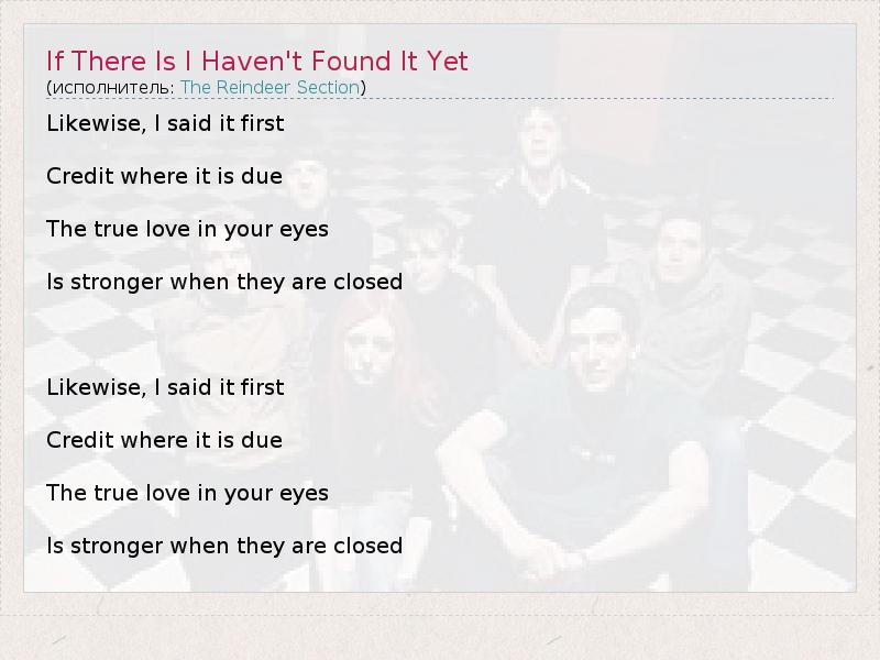 ГлавнаяИсполнителиThe Reindeer SectionIf There Is I Haven't Found It Yet