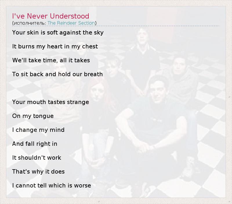 А как ты думаешь, о чем песня "I've Never Understood" ?