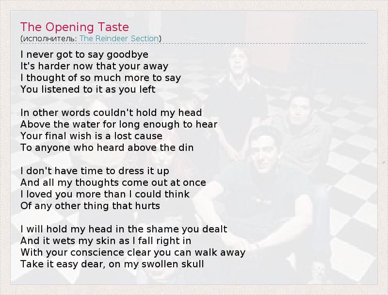 А как ты думаешь, о чем песня "The Opening Taste" ?
