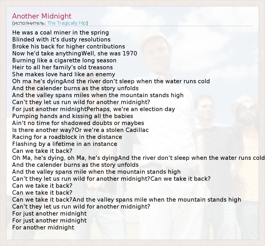 А как ты думаешь, о чем песня "Another Midnight" ?