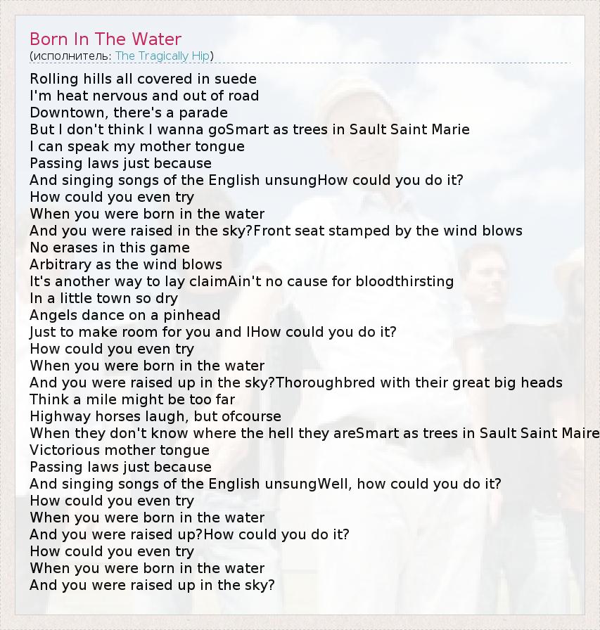 А как ты думаешь, о чем песня "Born In The Water" ?