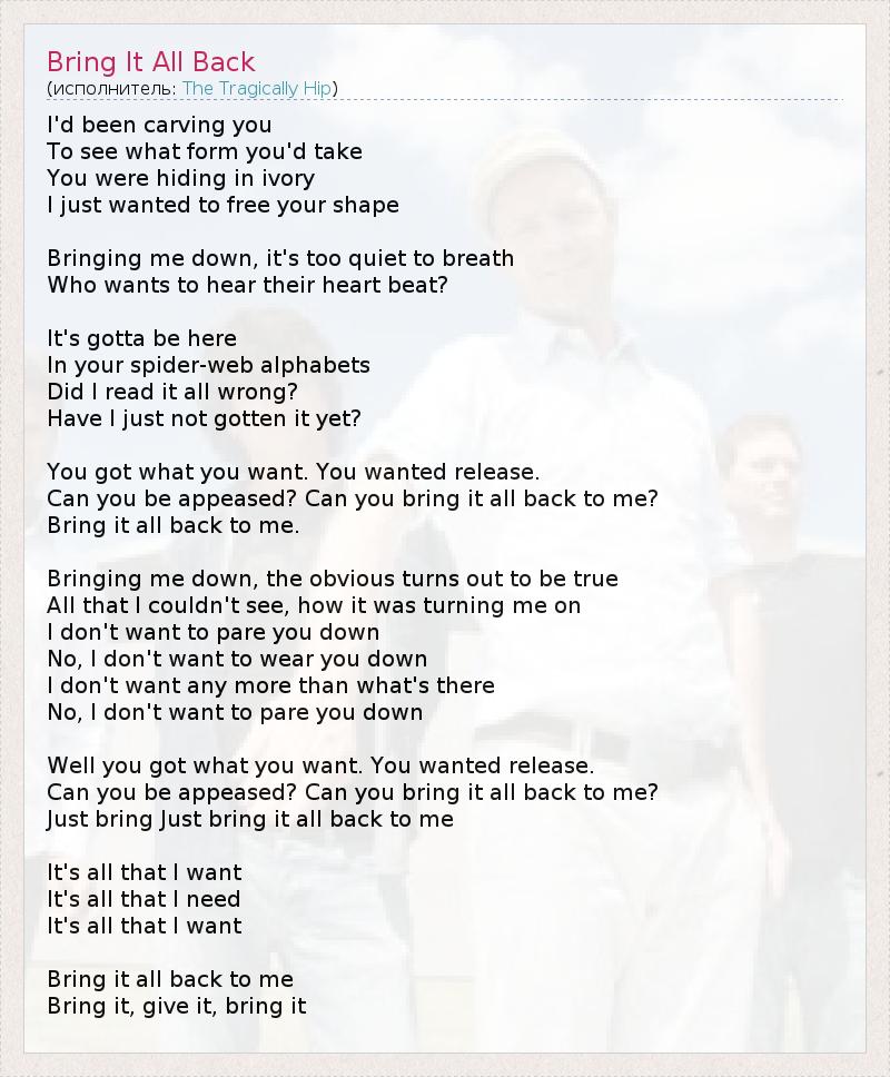 А как ты думаешь, о чем песня "Bring It All Back" ?