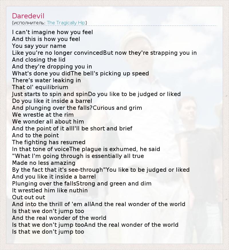 А как ты думаешь, о чем песня "Daredevil" ?