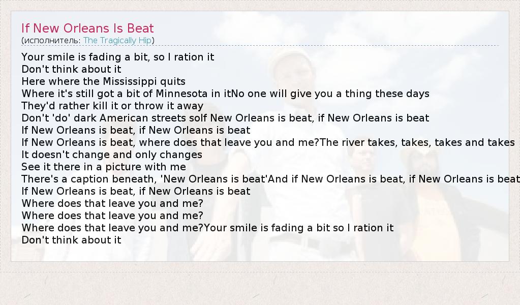 А как ты думаешь, о чем песня "If New Orleans Is Beat" ?
