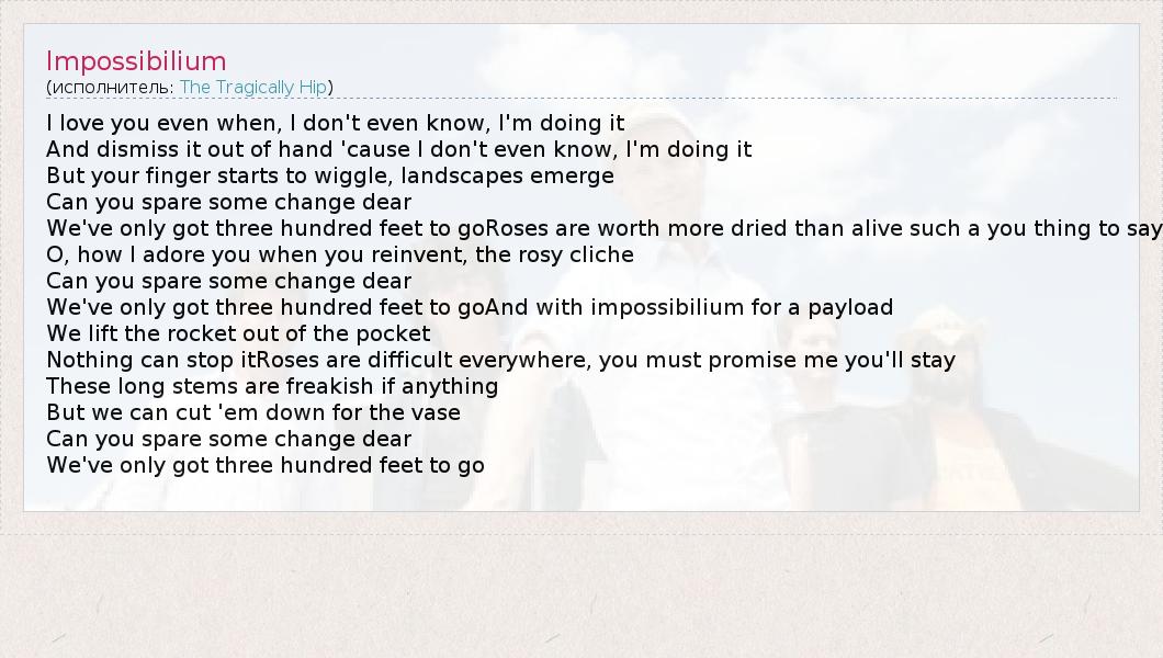 А как ты думаешь, о чем песня "Impossibilium" ?