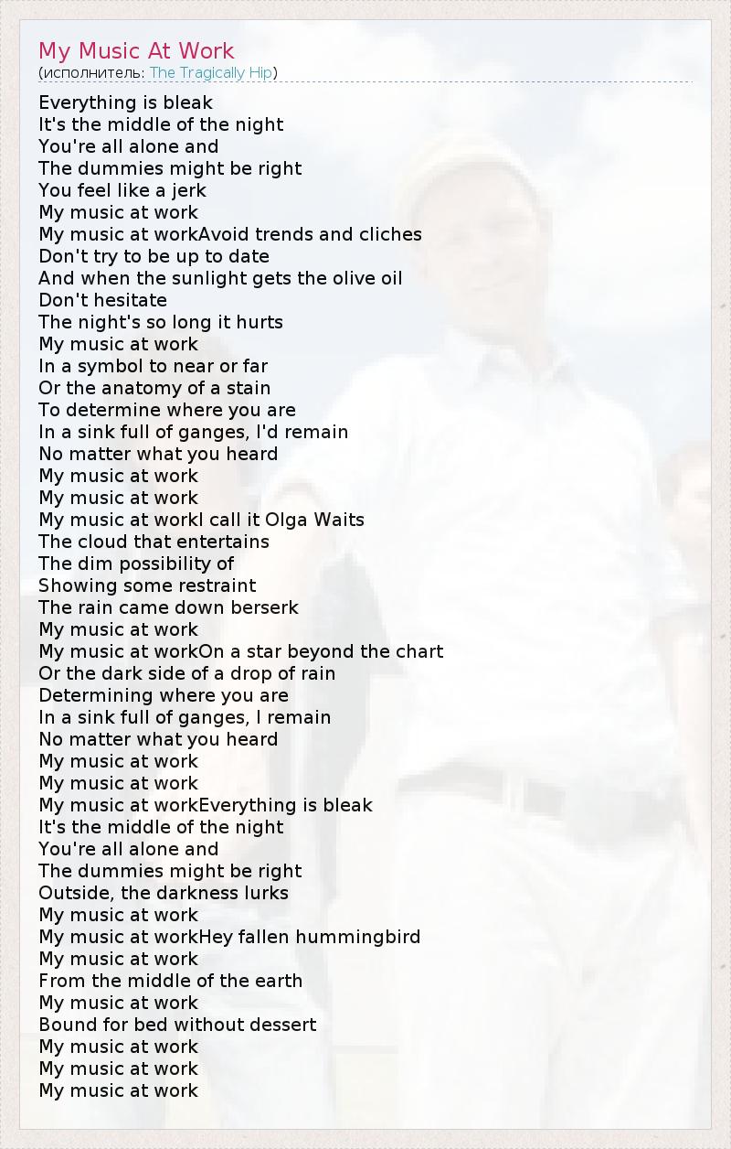 А как ты думаешь, о чем песня "My Music At Work" ?