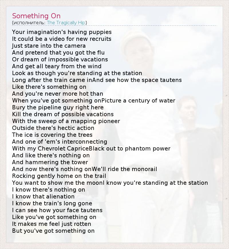 Это интересно:The Tragically Hip (часто просто The Hip) — канадская рок-группа, выступающая с 1983 года. За время существования The Tragically Hip выпустили 12 студийных и два концертных альбома и 46 синглов. Девять альбомов группы возглавляли канадские хит-парады, среди ее многочисленных наград 12 премий «Джуно» и Премия генерал-губернатора за карьерные достижения в области искусства.Группа сформировалась в 1983 году... продолжение