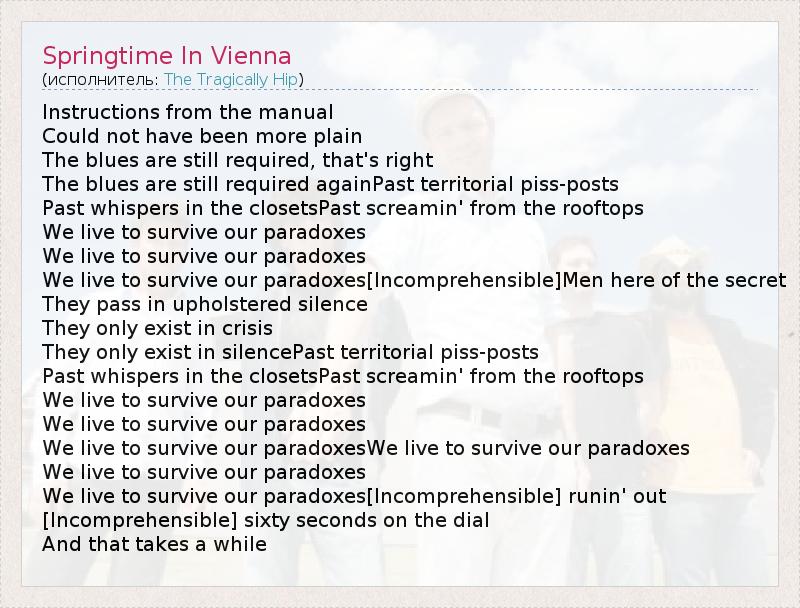 А как ты думаешь, о чем песня "Springtime In Vienna" ?